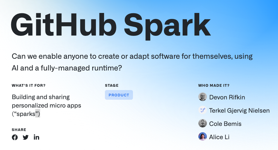 You can learn more about Spark here: https://githubnext.com/projects/github-spark