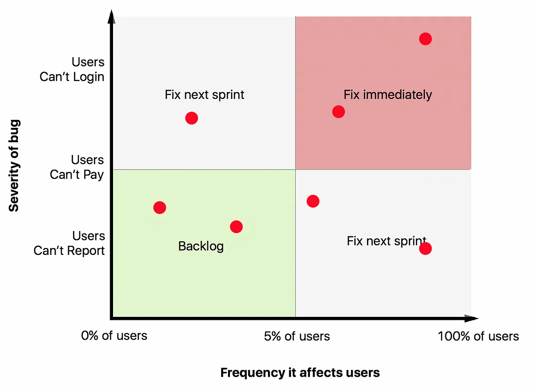 Another approach is to agree on 2 axes that can be used to segment your work into Here’s a simple framework for triaging bugs laid out in Ruthless Prioritization: