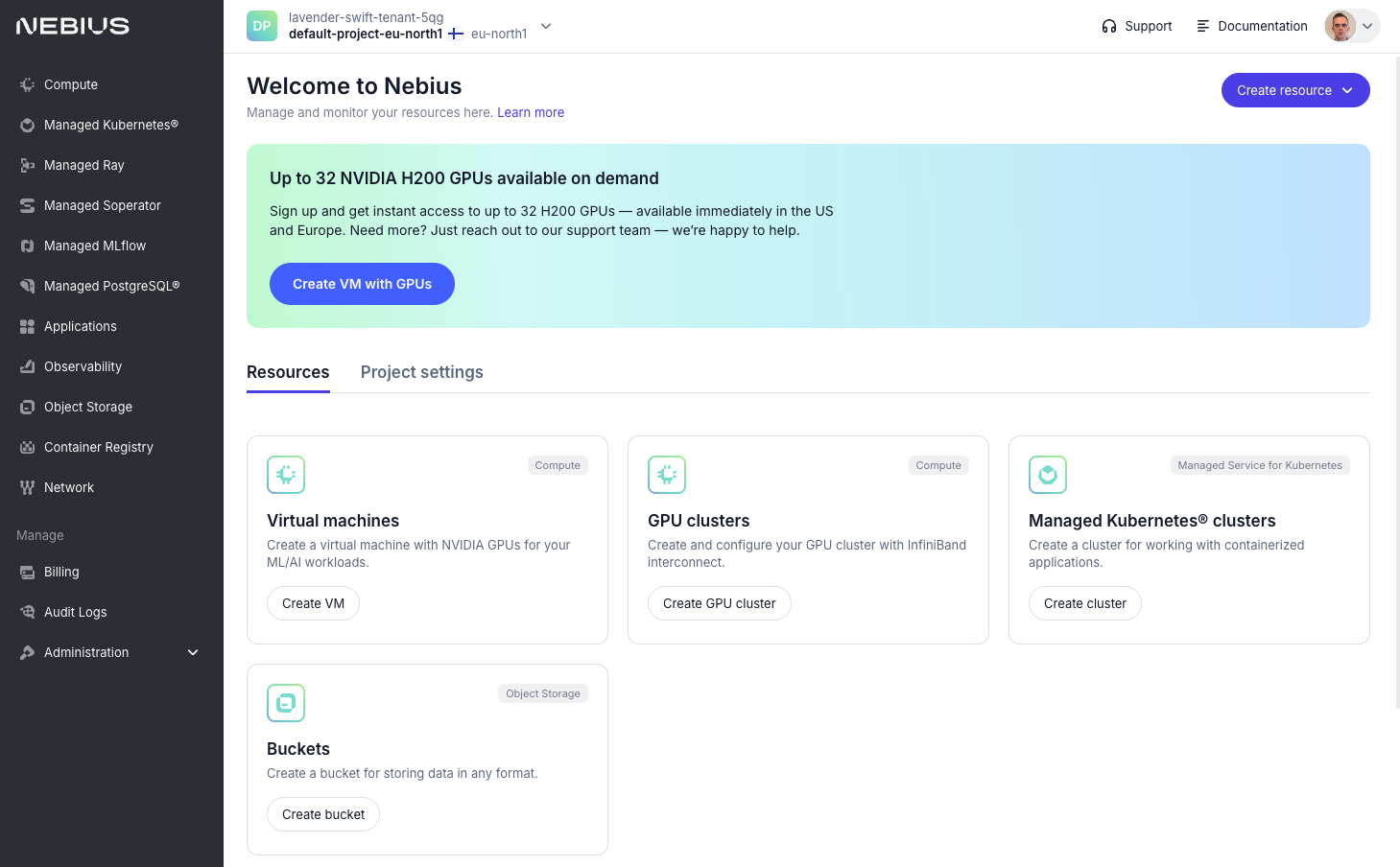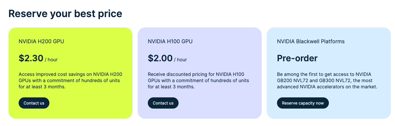 - Nebius provides just enough UI to launch basic GPU infra. They largely compete on price.