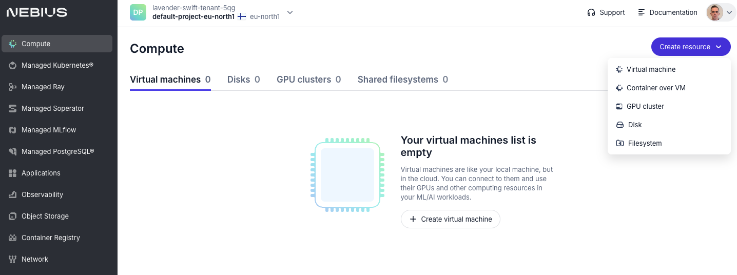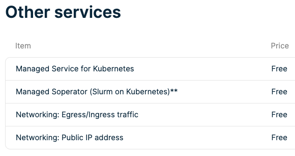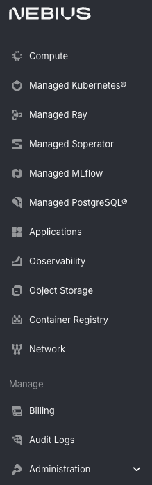 - Managed offerings: Kubernetes, Ray, Soperator, MLflow, PostgreSQL
