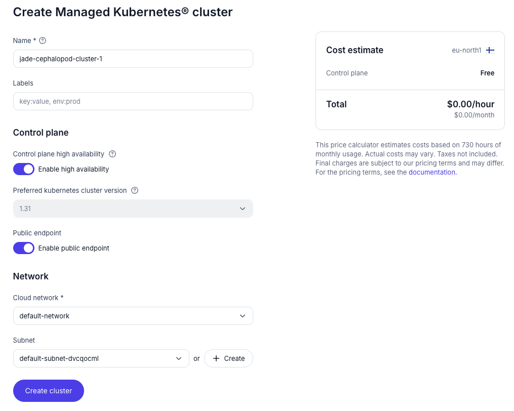 - Managed k8s control plane is free (but you still need to add billing details)