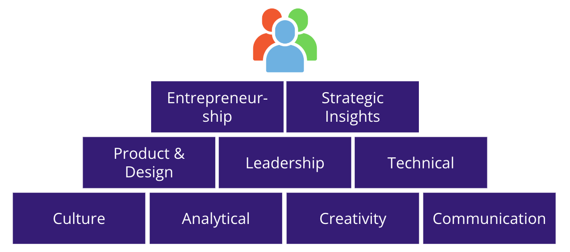 The following list of attributes reflects the expectations placed on Product Managers at many large organizations. These attributes are centered on a mid-level Product Manager (L5) but scale +/- 1 level pretty easily.