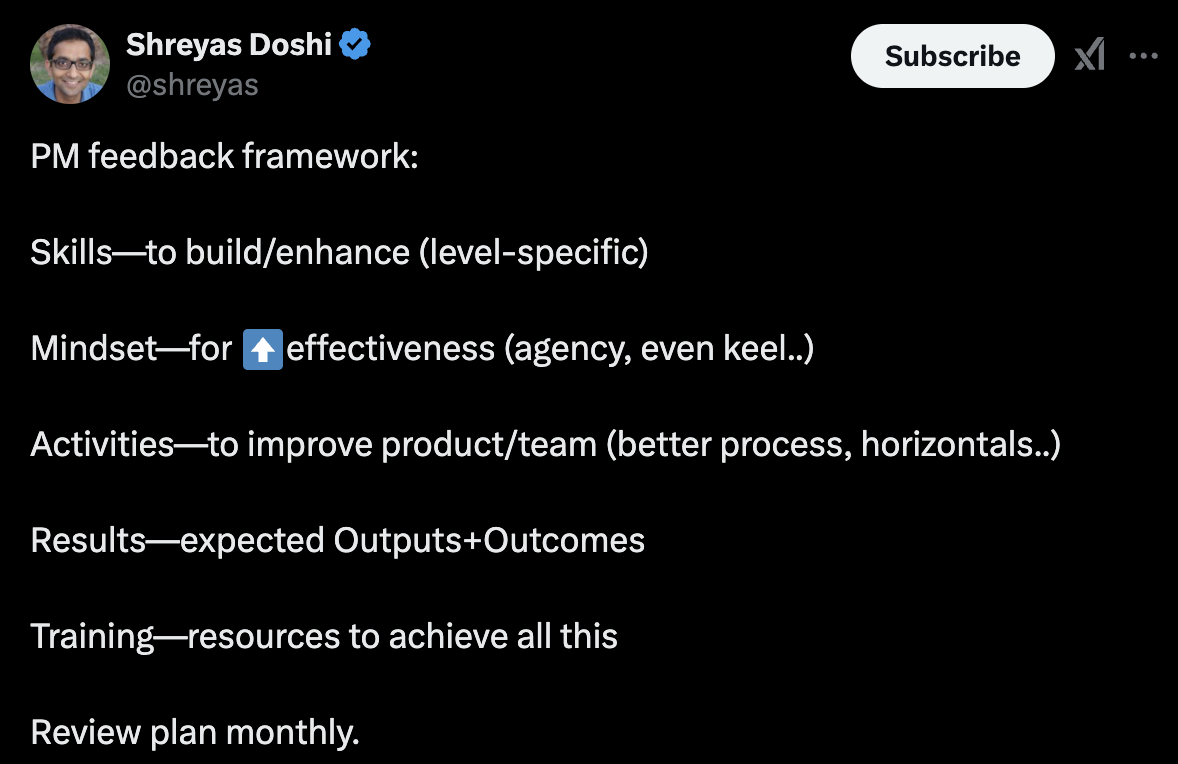 You also should think beyond the traditional attributes that make up the PM ladder. A great strategist will be useless unless they also have the mindset and agency to act. More from Shreyas Doshi on Twitter / X: