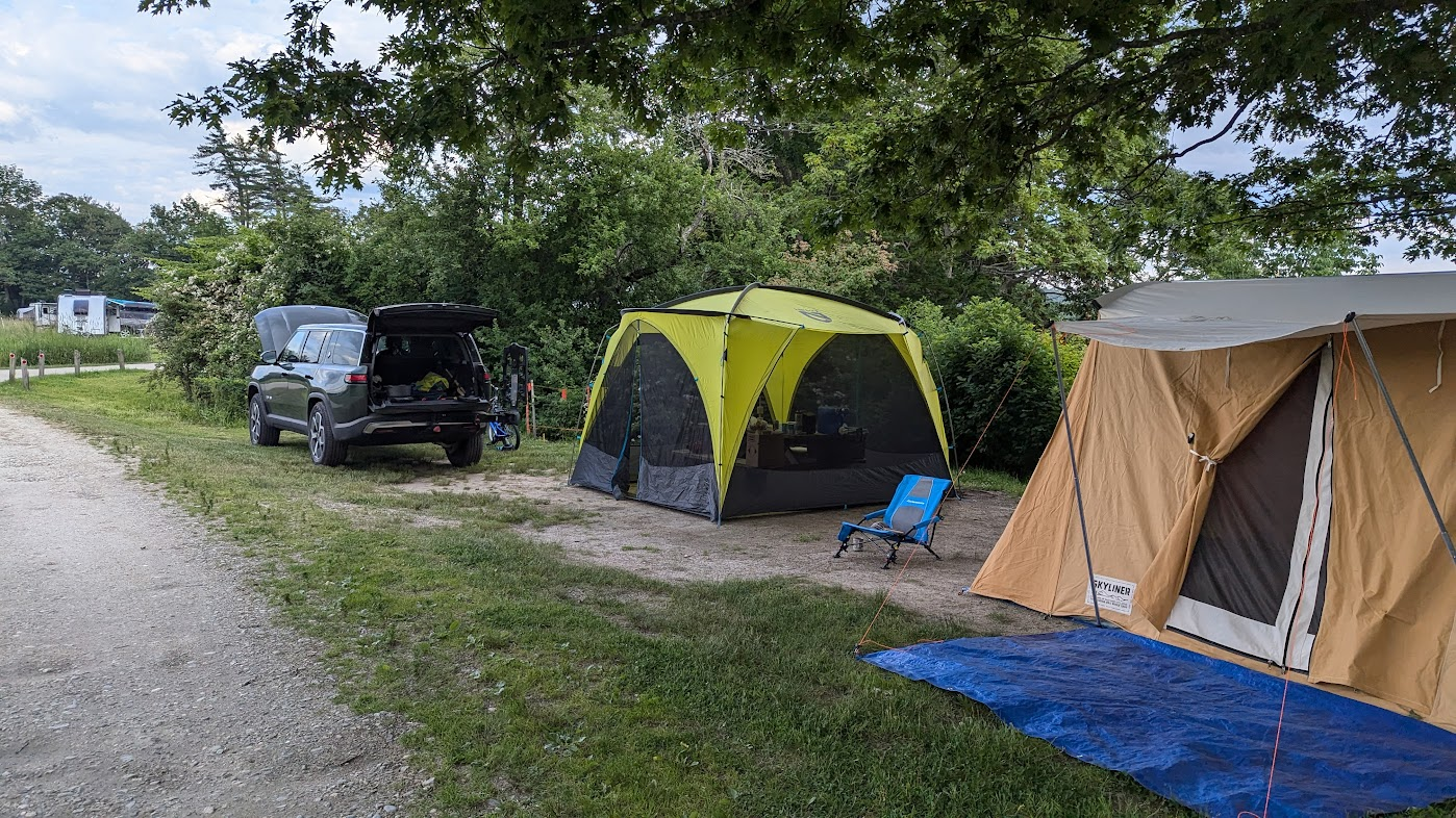 While it would be nice to have a big ol RV for camping trips, we just don’t camp enough each year (⇐6 times) and we don’t have the room to store something to make it worth it. Instead we got a big 10x14 foot tent (Springbar Skyliner) and we occasionally rent a little trailer.